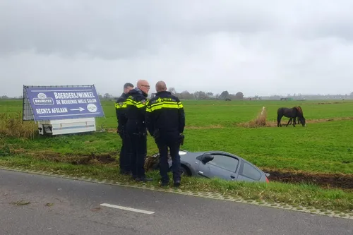 Bergen een auto te water geraakt. De bestuurder is aangehouden.