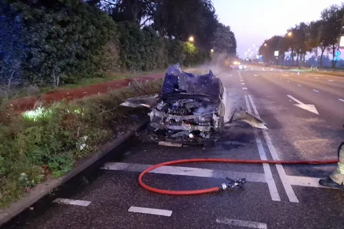 de auto opeens begon te branden. Het lukte de bestuurder zijn voertuig aan de