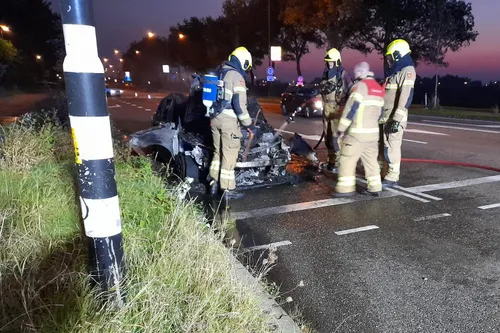 Westtangent in Heerhugowaard een auto in brand gevlogen.