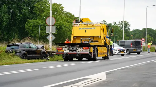 Een bergingsbedrijf heeft de zwaar beschadigde auto van de