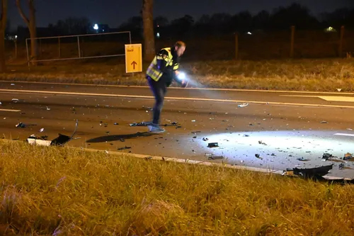 Na het ongeluk lag de weg vol met brokstukken en een