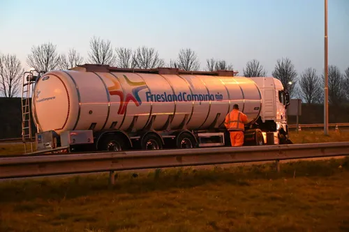 vanmorgen rond 5.30 uur een zuivel-tankwagen en een personenauto met elkaar in botsing