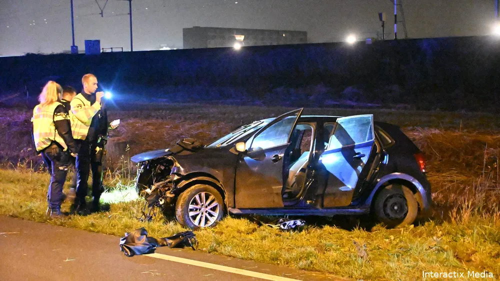 Volgens de politie reed de bestuurder met een te hoge snelheid. Meerdere hulpdiensten kwamen ter plaatse, waaronder twee ambulances en meerdere politie-eenheden. De bestuurder en een passagier zijn ter plaatse nagekeken door ambulancepersoneel. De passagier is voor verdere behandeling overgebracht naar het ziekenhuis.
