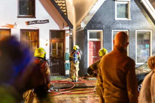 rookinhalatie. De brandweer verricht sloopwerkzaamheden, op zowel het dak