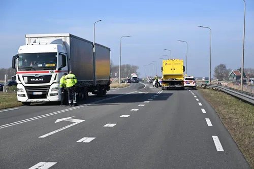 terecht. Ook de betrokken vrachtwagen kon niet meer verder rijden. Over een
