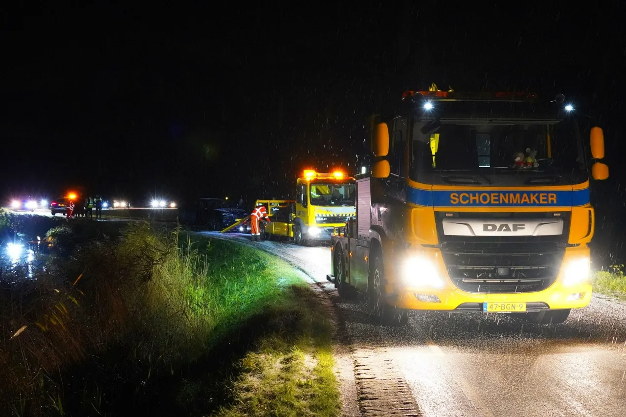 Vanwege de extreem gladde dijk gleed een auto uit de bocht het water in. Een tweede automobilist zag de auto liggen en trapte hard op de rem. Dit met desastreuze gevolgen.