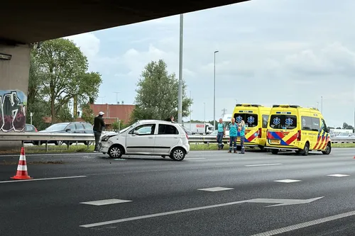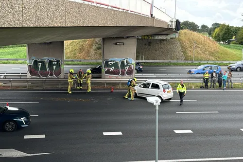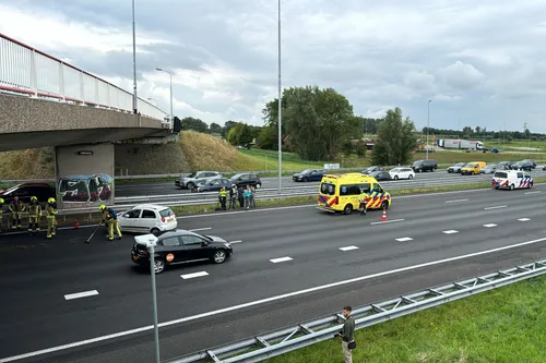 Door het ongeluk zijn twee rijstroken dicht. Hierdoor is zes