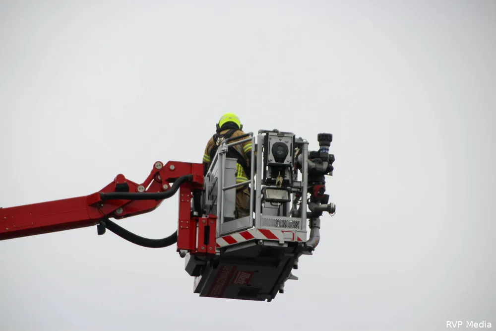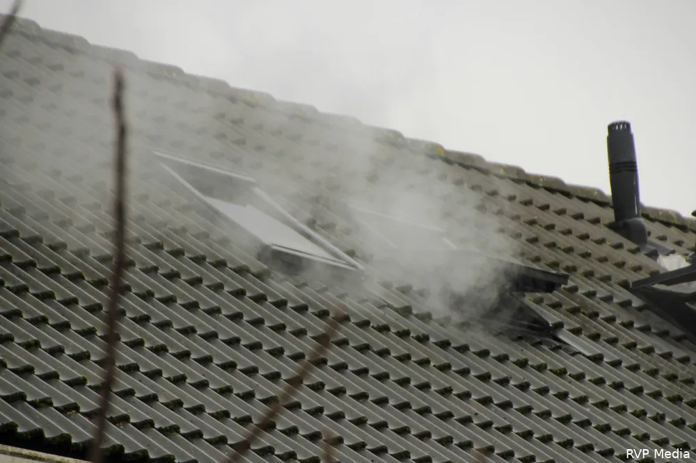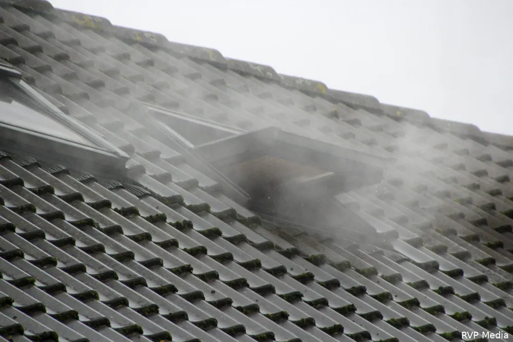 De brandweer schaalde op naar middelbrand en rukte met meerdere blusvoertuigen en een hoogwerker uit om het vuur te bestrijden. De brand was snel onder controle, maar de zolder van de woning raakte zwaar beschadigd.