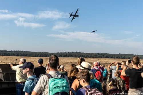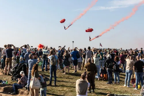 parachutisten, tot muziekoptredens en het bezichtigen van historische legervoertuigen,