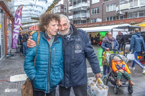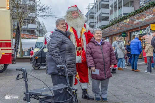 Alkmaar - Wat kunnen die weergoden toch dwarsliggen! Zoveel kerstmannen in Nederland 'Singing in the rain'...Ook in jubilerend winkelcentrum De Mare in Alkmaar-noord was het zaterdag 21 december 2024 druilerig, maar dat mocht 'm de pet en in dit geval ook de kerstmuts niet drukken.