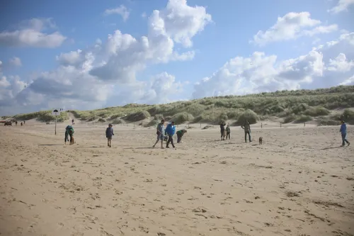 laatste strand-schoonmaakochtend van dit jaar in Petten. Men gaat samen met