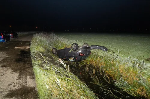 over de kop. Wonder boven wonder raakte de bestuurder niet gewond en kon hij