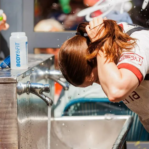 Bij de finish werd een extra sportdrank uitgereikt om de